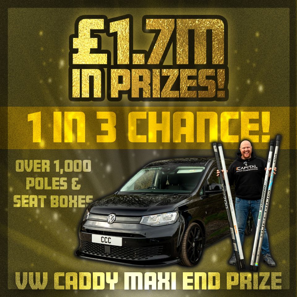 There’s OVER 83,000 prizes worth over £1.7M to win INSTANTLY including hundreds of poles, rods, reels, luggage, plus a VW Caddy Maxi Van or £20,000 cash end prize!