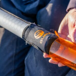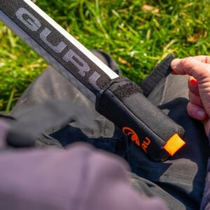 The Pole Safe is a ‘top and tail’ design, with protective elasticated neoprene cups on either end of an elasticated strap. The cups fit neatly over the ends of a pole, with the elasticated strap holding everything together neatly and securely in place. The cups are padded and fit snug to prevent any damage to the all-important end parts of the pole, while at the same time holding the pole in place when its packed away in storage and transport.