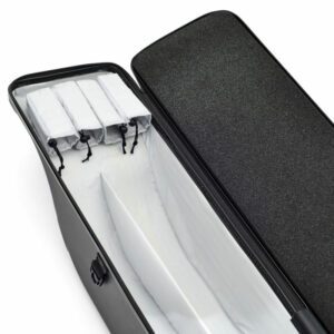 The rod tails are easily located into Velcro removable butt holders, which can also be secured onto the sections thanks to a locking draw cord. However, it is the simple but clever application of thicker foam within the lid, which not only softly secures and keeps the rods in place but offers added cushion for protection.