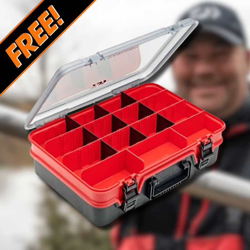 The tough two layered compartment case is partitioned to allow custom design of the internal layout, creating up to 25 individual compartments of varying sizes for feeders and accessories, Featuring 4 closure points and a robust folding carry handle.