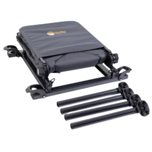 Alongside this, the solid frame ensures maximum stability, while the memory foam mattress cushion provides all-day comfort, with a solid back support which folds down easily for storage and transport. This back support offers a perfect relaxed posture for fishing when in place.