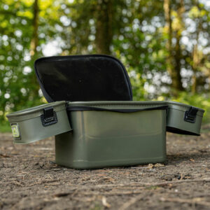 • Comes with two internal trays, one of which features a 3mm mesh for riddling naturals and groundbaits.
