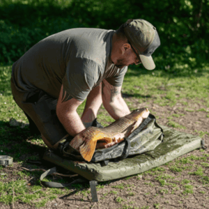 • On the rear of the mat there is a specimen weigh sling, held neatly in a small pouch.