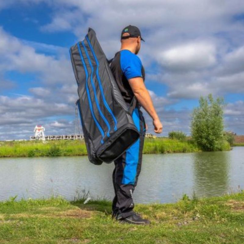 A spacious holdall that is capable of housing six rods + of up to 11ft/3.30m 2pc this holdall is the perfect choice for the angler that likes to carry a large quantity of rods. The internal space is extremely spacious allowing even the largest distance reels to be stored with ease. 2 external pockets can also be found, perfect for storing landing net handles & a Tip Safe.