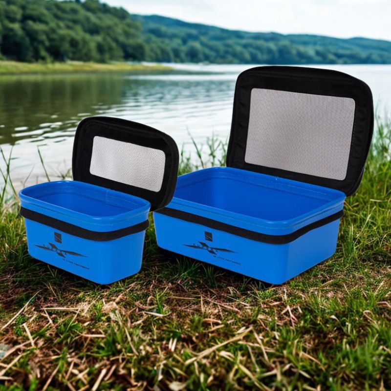 Perfect for storing and transporting livebaits, the mesh lid allows good airflow to keep baits like maggots in top condition.